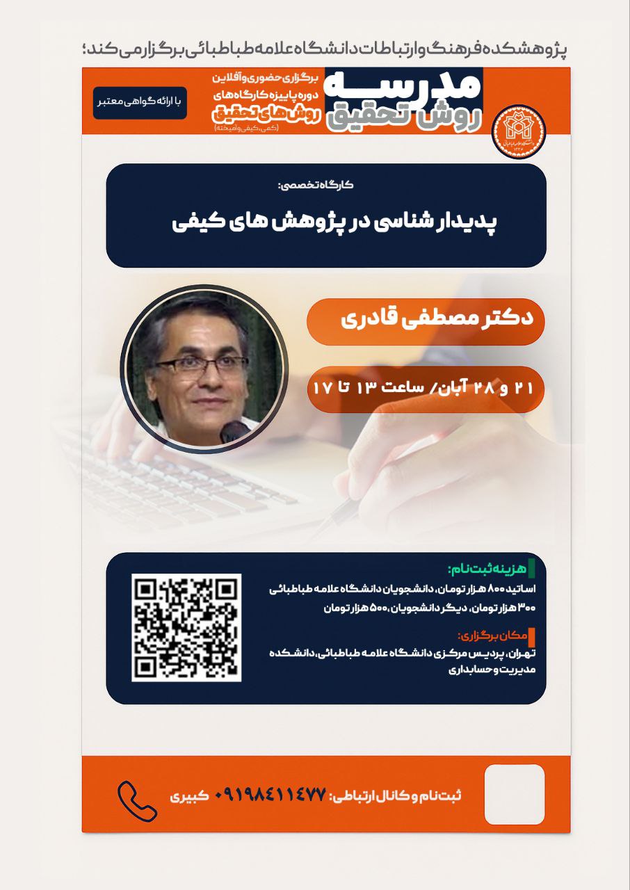 پدیدار شناسی در پژوهش های کیفی تاریخ : ۲۱ مهر ۱۴۰۴ محل برگزاری : تهران، پردیس مرکزی دانشگاه علامه طباطبایی، دانشکده مدیریت و حسابداری